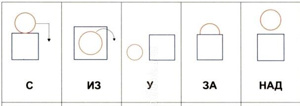 - Показывала детям карточку со схемой предлога. Просила повторить эту схему на предметах (на том же домике с любой игрушкой). Или же можно найти письменные такие упражнения, где необходимо соединить схему предлога с картинкой. Варианты схем (найдены на просторах Интернета):